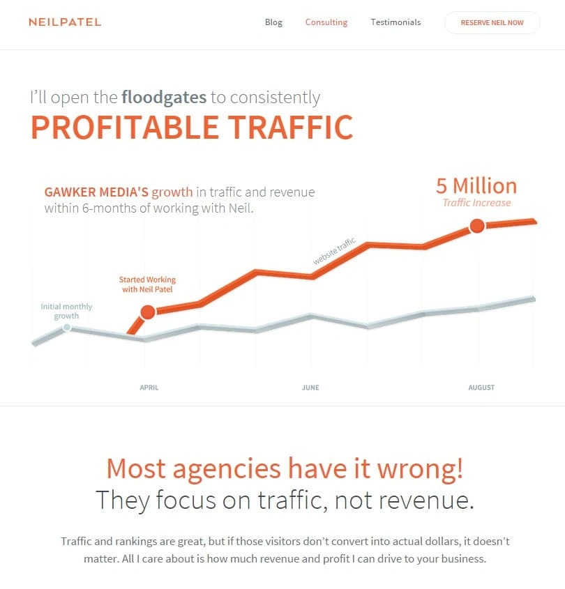 一个设计精良的咨询页面的绝佳例子来自Neil Patel和他的个人网站: