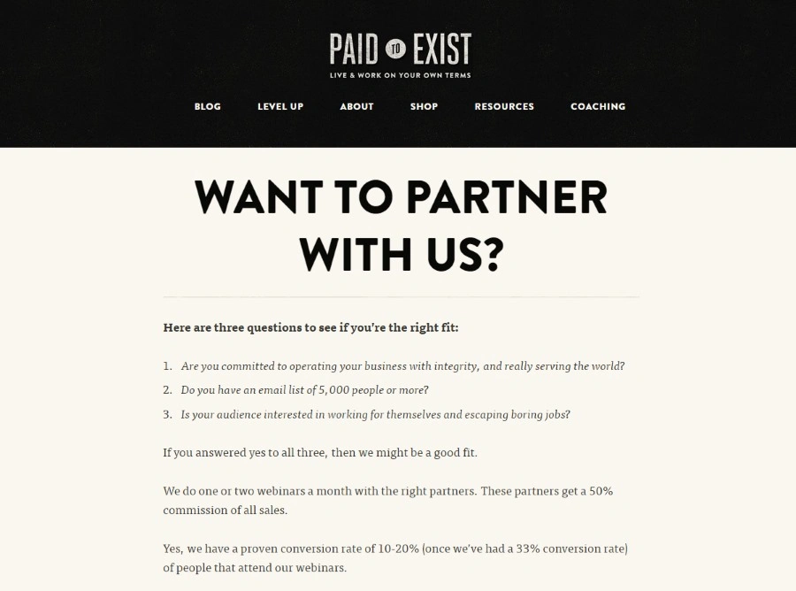 类似于“雇用我”页面,合作伙伴页面的主要价值在于它仅凭存在本身就能吸引合作伙伴。当然,优秀的文案也至关重要,就像大多数类型的页面一样。