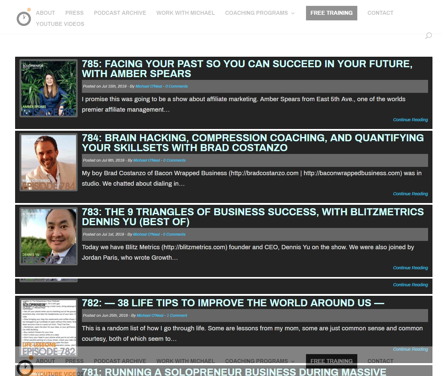 没什么特别的,只是一个所有剧集的列表,以及指向专门介绍单个剧次的子页面的链接。直接链接到播客的iTunes页面和RSS订阅源也是必须的。