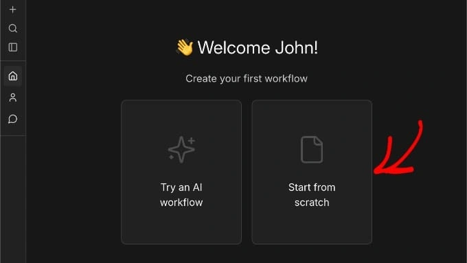 要开始构建新工作流程,请点击"从零开始"按钮。这将打开工作流程编辑器,您将在其中构建自动化。