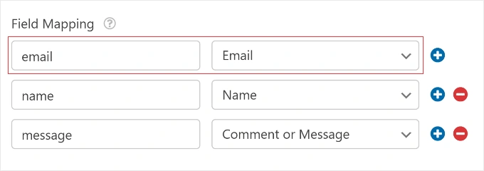 点击蓝色的“+”按钮添加更多行,用于其他字段,例如姓名或电话号码。映射完字段后,点击表单构建器中的“保存”。