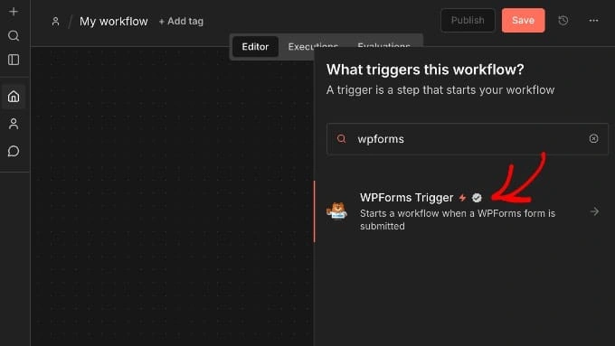 第三步:在 n8n 中配置 WPForms 触发器