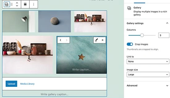图库块的工作原理与图片块类似。添加后,您可以上传或选择图片文件。