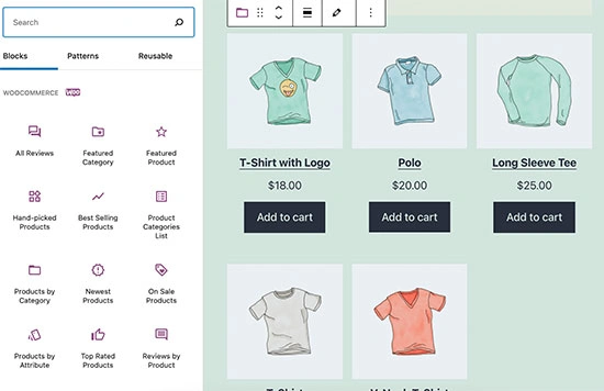 WooCommerce 还自带块,您可以轻松将其添加到 WordPress 的任何文章和页面中。
