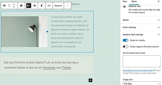 使用旧版编辑器时,许多用户无法在文本旁边添加图片。现在,您可以使用Media & Text 块来实现这一功能。
