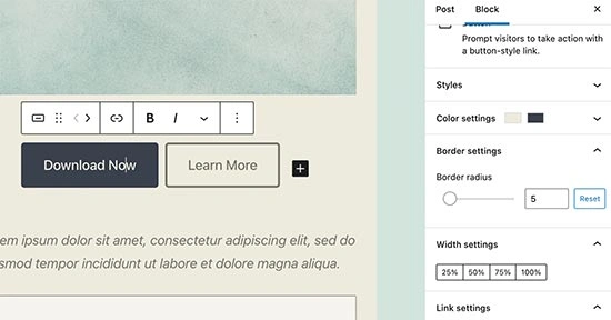Gutenberg提供了一个按钮块,让您可以在任何文章或页面中快速添加按钮。