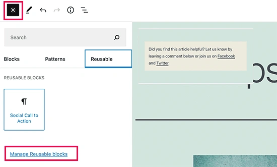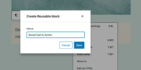 现在,块编辑器会将区块保存为可重复使用的区块。