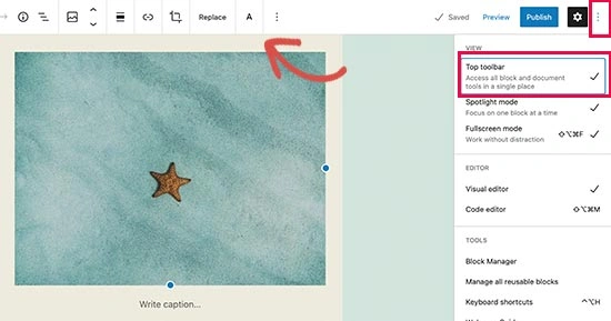 你可能已经注意到,在上面的截图中,每个区块的顶部都有一个工具栏。你可以将这个工具栏移到编辑器的顶部。