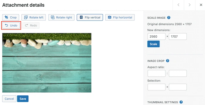 你可以在你的WordPress网站的管理区进行基本的图像编辑,包括旋转图像或垂直翻转。这可以让你在WordPress中修复颠倒或翻转的图片,而不必安装任何额外的插件。