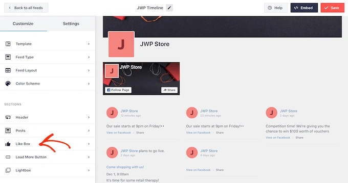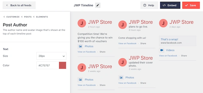 这是一个好的开始,但 Smash Balloon 有很多设置,您可以使用它们来自定义您的嵌入式时间线。