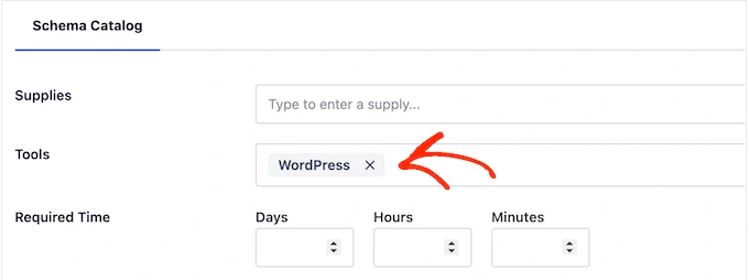 如果读者需要任何专业设备或资源来完成指南,则应将其输入 "Supplies "字段。 在每个项目后,按键盘上的 "Enter "键将其添加到schema中。