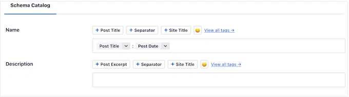 您也可以使用纯文本和标记或多个标记的组合。 例如,您可以使用 "Post Title"和 "Post Date"。每次使用模板时,AIOSEO 都会用真实值替换这些标签。
