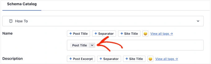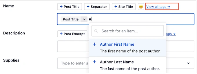 若要更改,只需删除 "Post Title "标签,然后点击 "View all tags"。 现在您可以从下拉菜单中选择任何标签。