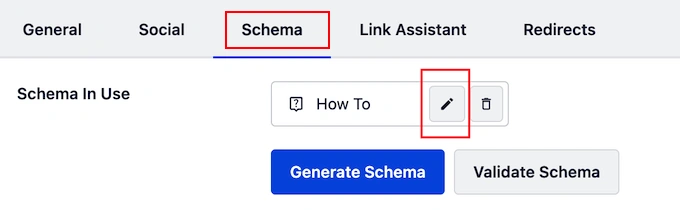 在这里,找到您之前添加的 "如何 "Schema并点击其铅笔图标。