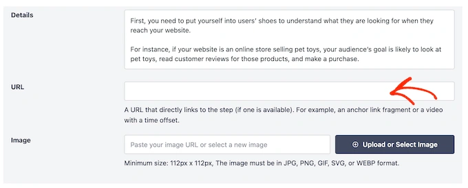 如果是这样,您就可以在 "URL "字段中添加该步骤的锚链接。