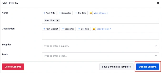 现在,您可以进行更改或输入您想用于此特定 "如何 "指南的任何额外信息。 完成后,点击 "Add Schema"。