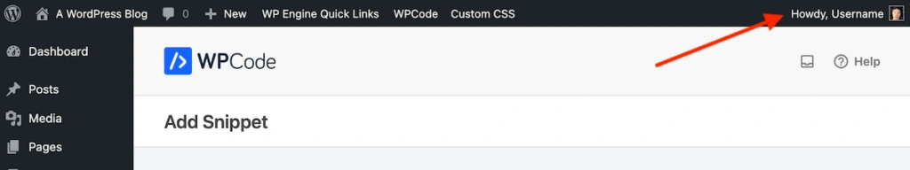 举个例子,假设您想更改 WordPress 仪表板右上角显示的 "你好,用户名",使其显示得更专业一些。
