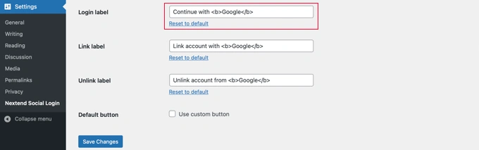 完成后,您还可以通过编辑“登录标签”字段中的文本来更改按钮文本。如果愿意,您可以使用 HTML 将一些基本格式应用于登录标签。