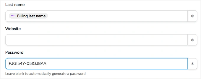 接下来,您会看到一个单独的密码字段。您可以留空,Uncanny Automator 会自动为新用户生成一个安全密码。
