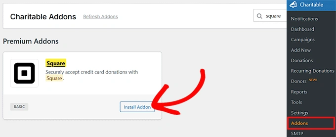 接下来,您需要启用 Square 插件,以便您的表单可以接受定期 Square 付款。
