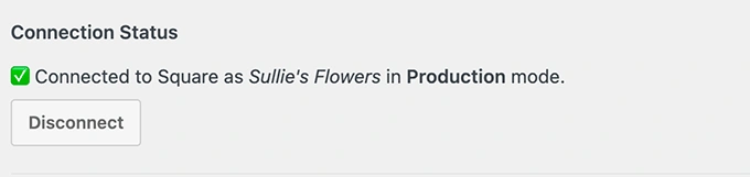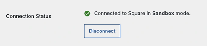 如果一切设置正确,您将在连接状态旁边看到一个绿色复选标记和成功消息。这就是您确认 Square 已连接的方式。