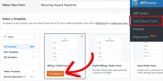 方法 1:使用 WPForms 接受循环 Square 支付(适用于想要循环支付 + 其他表单的初学者)