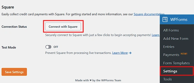 步骤 3:将 Square 连接到 WPForms