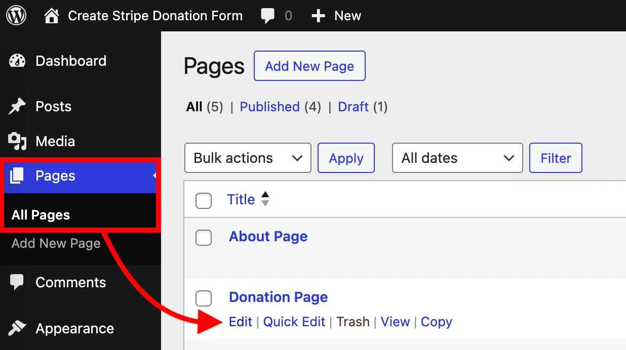从这里,进入页面所有页面(或者文章所有文章,如果你想添加到文章中的话)。