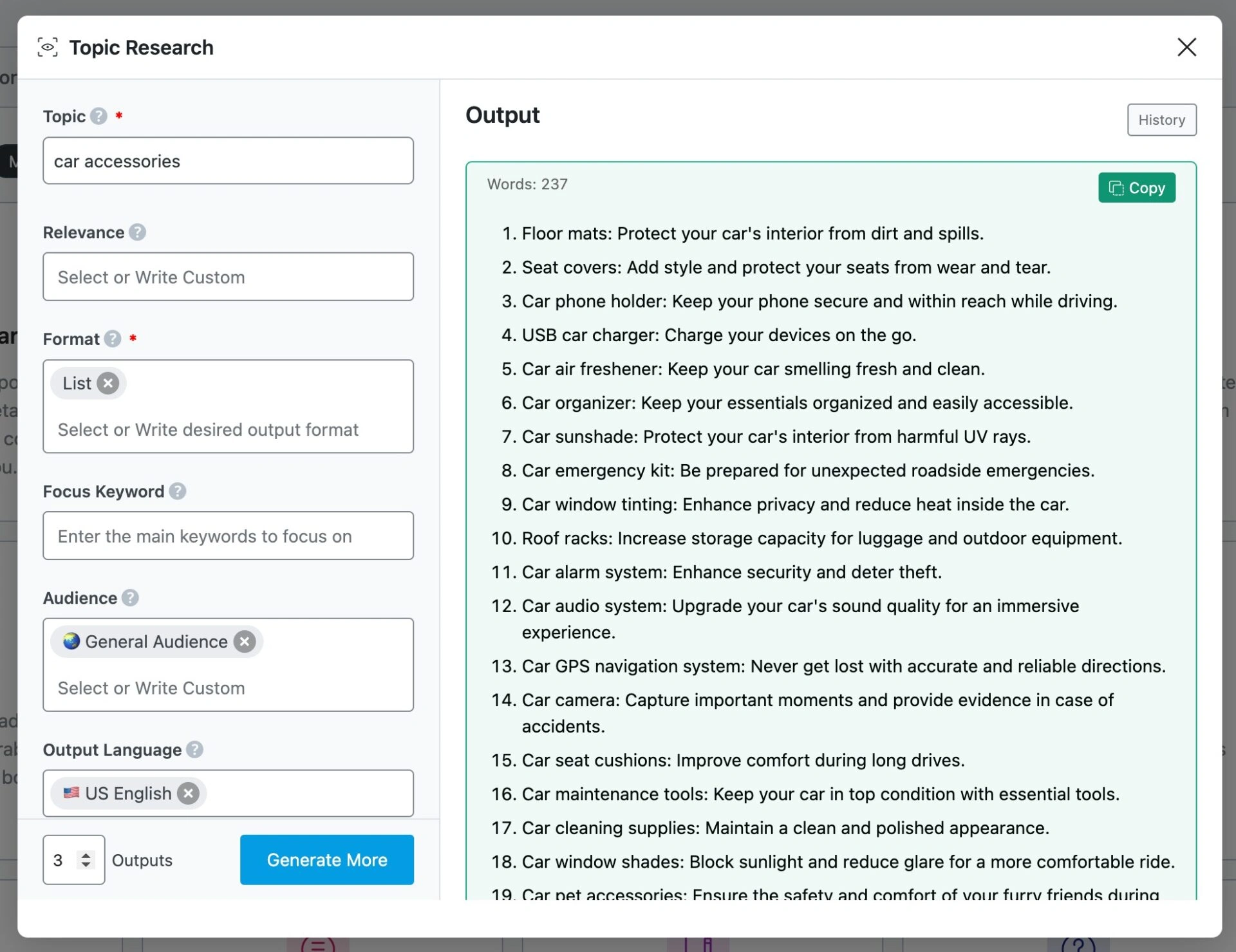 我们的主题研究 AI 工具可帮助识别热门主题和相关主题,让您更轻松地选择具有强排名潜力的支柱页面。
