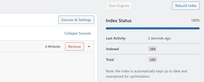 SearchWP现在将开始根据你的设置建立一个搜索索引。