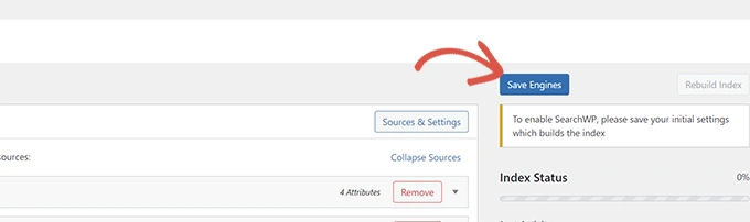 一旦你完成审查搜索源,你可以继续点击保存引擎按钮。