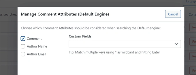这将带来一个弹出窗口,你可以选择你想在搜索中包括哪些属性。