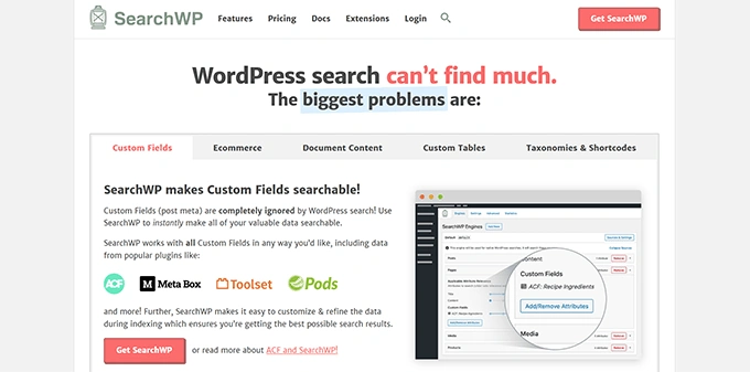 SearchWP是市场上最好的WordPress搜索插件。它允许你通过用一个更快、更准确的搜索引擎来改进WordPress搜索。