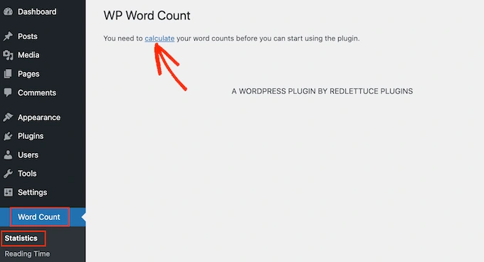 一旦你完成了这些,就去Word Count » Statistics。在你得到你的统计数字之前,你需要点击 "计算 "链接。