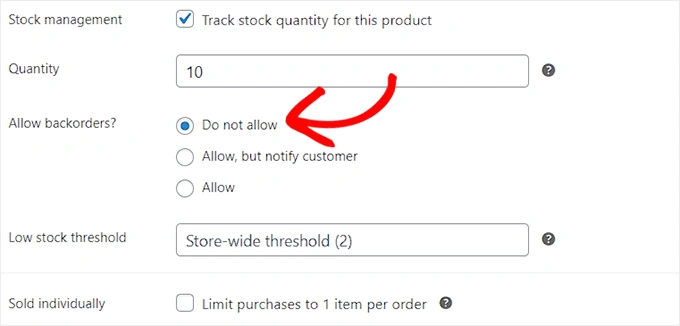 完成添加后,您必须在 "允许延期交货吗 "设置中选择 "不允许 "选项。 延期订购就像缺货商品的预购一样。现在,客户将无法对缺货商品下订单,用户不满意的几率也会降低。