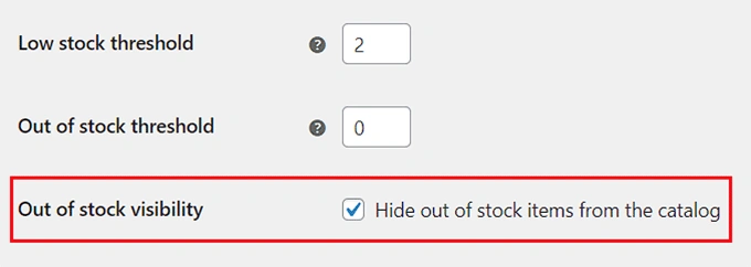 此外,你还可以勾选 "从目录中隐藏缺货商品 "选项。这意味着当用户浏览商店时,缺货商品不会显示在商店的产品目录中。