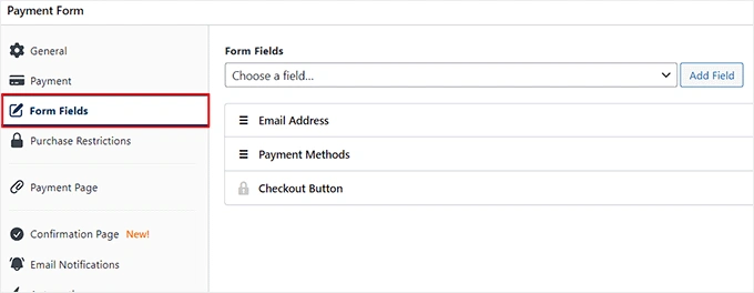 完成后,您可以切换到 "表单字段 "选项卡,根据自己的喜好添加、重新排列或删除表单字段。