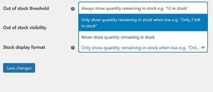 然后,您还可以从下拉菜单中配置 "库存显示格式 "选项。
