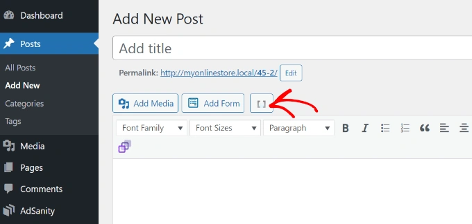 激活后,你可以创建一个新的帖子或编辑一个旧的帖子。一旦你进入经典编辑器,只需点击工具栏上的"[ ]"按钮。