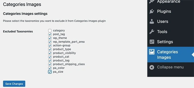 只需回到WordPress管理区的 "类别图片 "页面,勾选你想排除的分类。