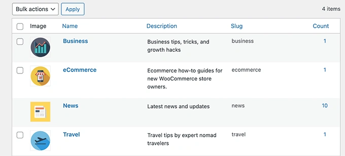 默认情况下,你的WordPress网站并没有为你的分类(如类别和标签)(或任何其他自定义分类)添加图片的选项。