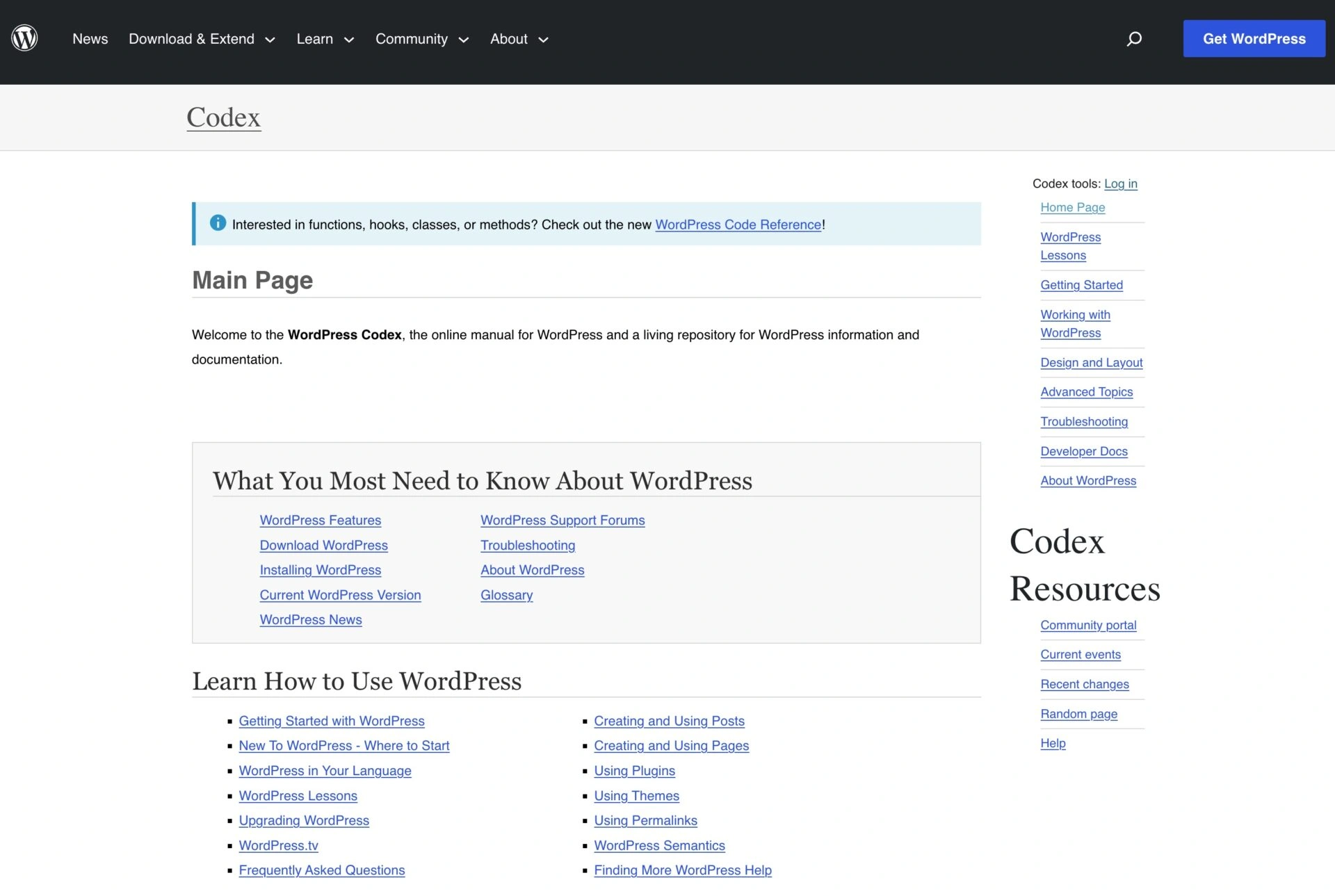 WordPress 文档往往更加面向文本,就像用户手册一样。文档网站提供说明、故障排除提示和资源,以跟上最新功能的更新。我们通常推荐 WordPress 文档给专业开发人员,因为其中很多内容都围绕编码展开。然而,即使是初学者也可以在这些网站中找到一些有用的信息。