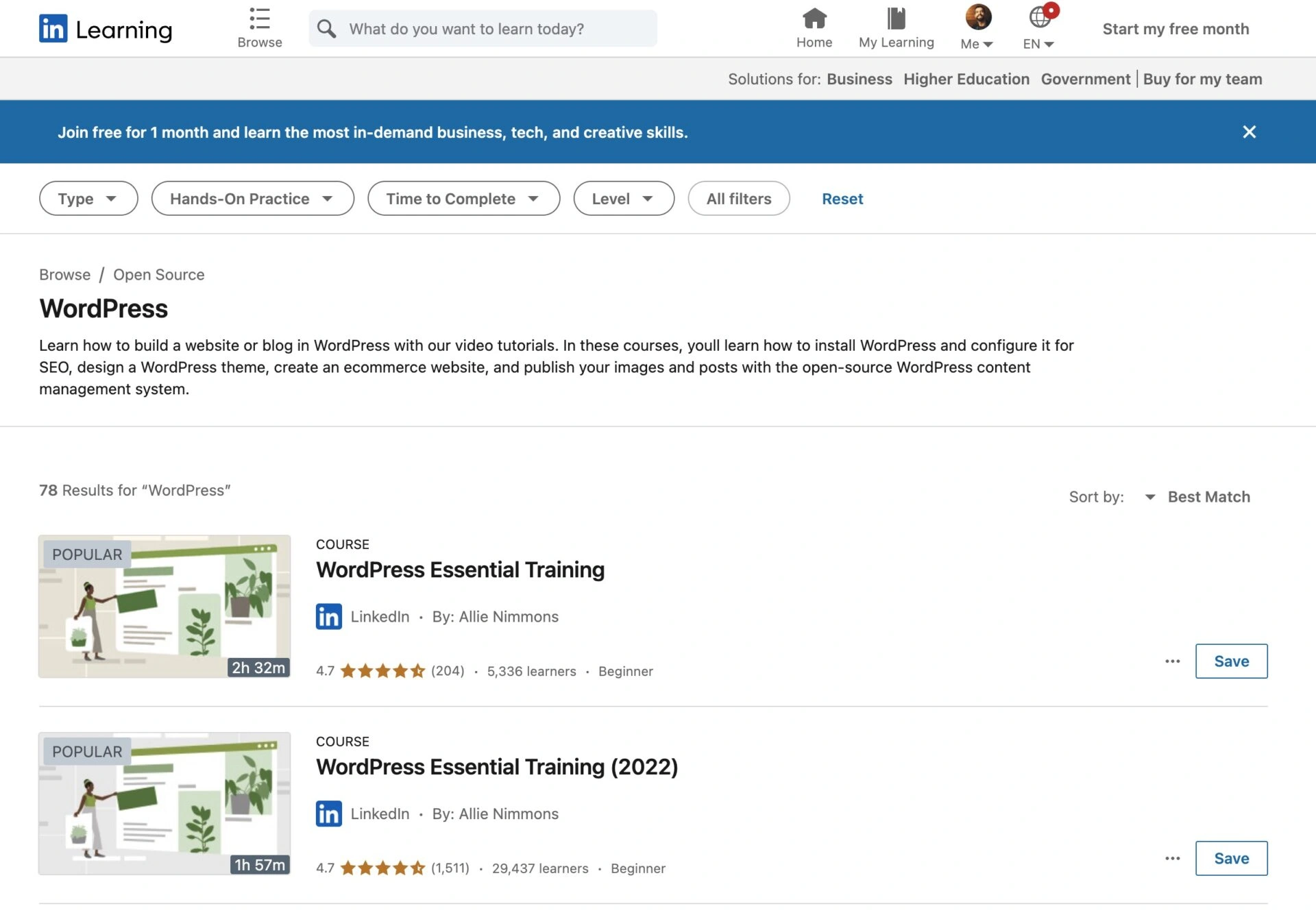 - LinkedIn Learning提供一个月的免费试用,之后订阅费用起价为每月19.99美元。