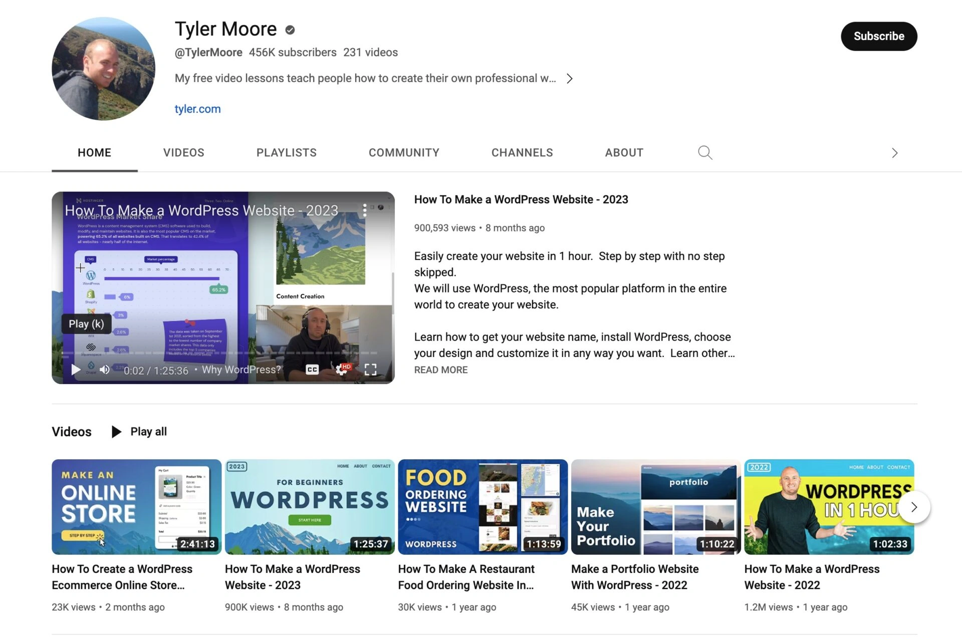 Tyler Moore 的 YouTube 频道充满了涵盖网站建设、WordPress 主题和插件、搜索引擎优化、电子商务和网站盈利的教程。Moore 简洁的教学风格对初学者友好,同时也深入探讨高级主题。
