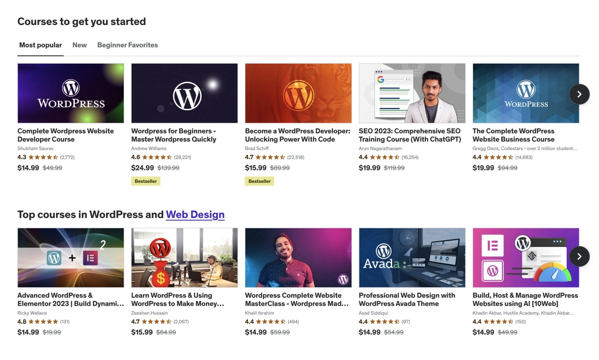 Udemy为所有级别的用户提供价格实惠的WordPress课程,从初学者到高级。选择适合您需求的课程,涵盖网站设计、插件开发和SEO优化等主题。通过自定进度的学习和终身访问,您可以按自己的方便学习。测验和作业加强学习并确保理解。