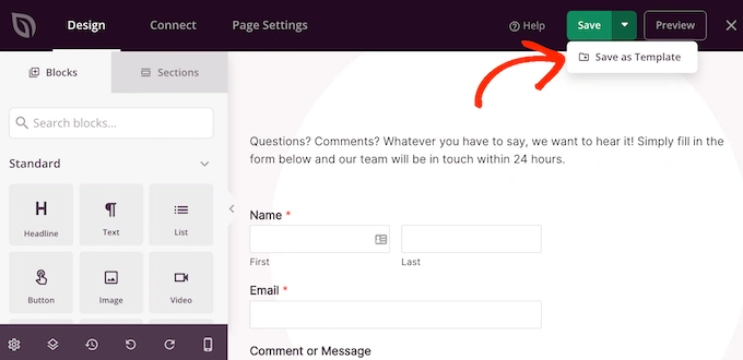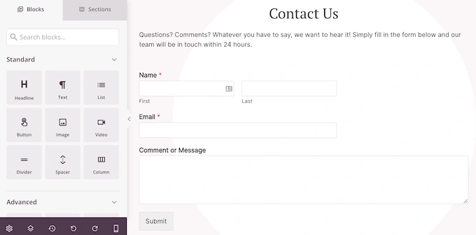 为此,只需在您的联系表上方添加一个“标题”或“文本”块,然后输入您要使用的文本。