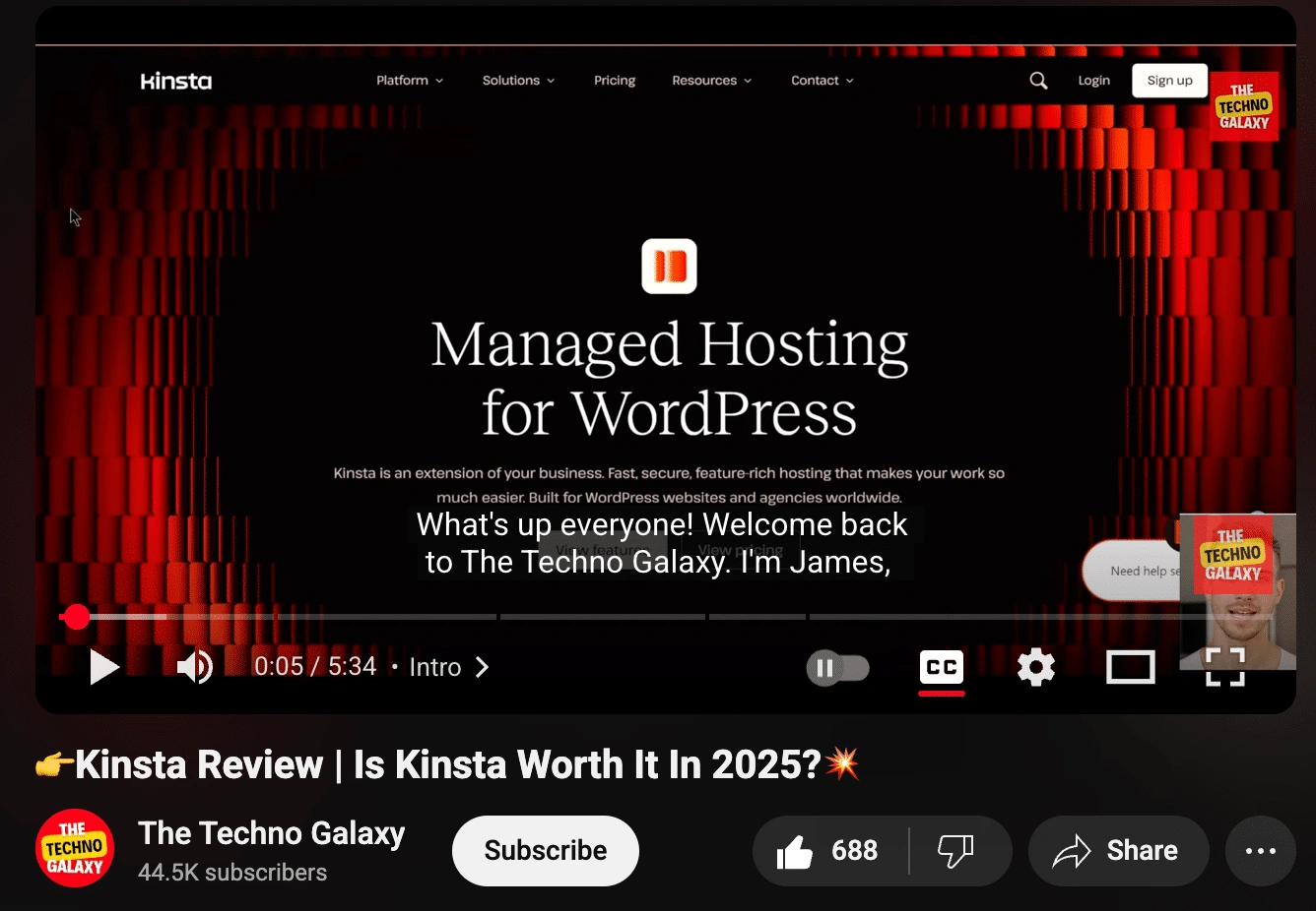 Kinsta video review by The Techno Galaxy(图片来源:YouTube