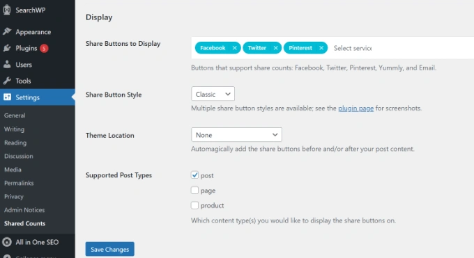 激活后,只需前往设置 " Shared Counts 页面配置插件选项。