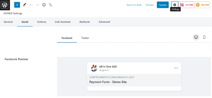 AIOSEO插件允许您轻松地为您的个人帖子和页面设置社交选项。