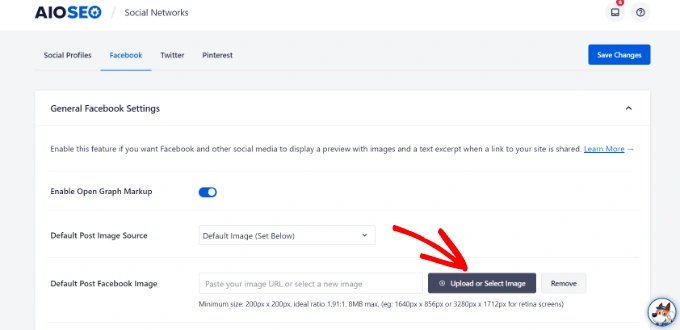 接下来,你需要切换到Facebook标签。从这里你可以看到,AIOSEO默认启用Open Graph元数据。